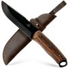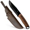 Bushcraft nůž s modrou čepelí z uhlíkové oceli s rukojetí z ořechu s koženým pouzdrem BeaverCraft BSH4