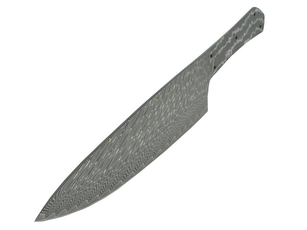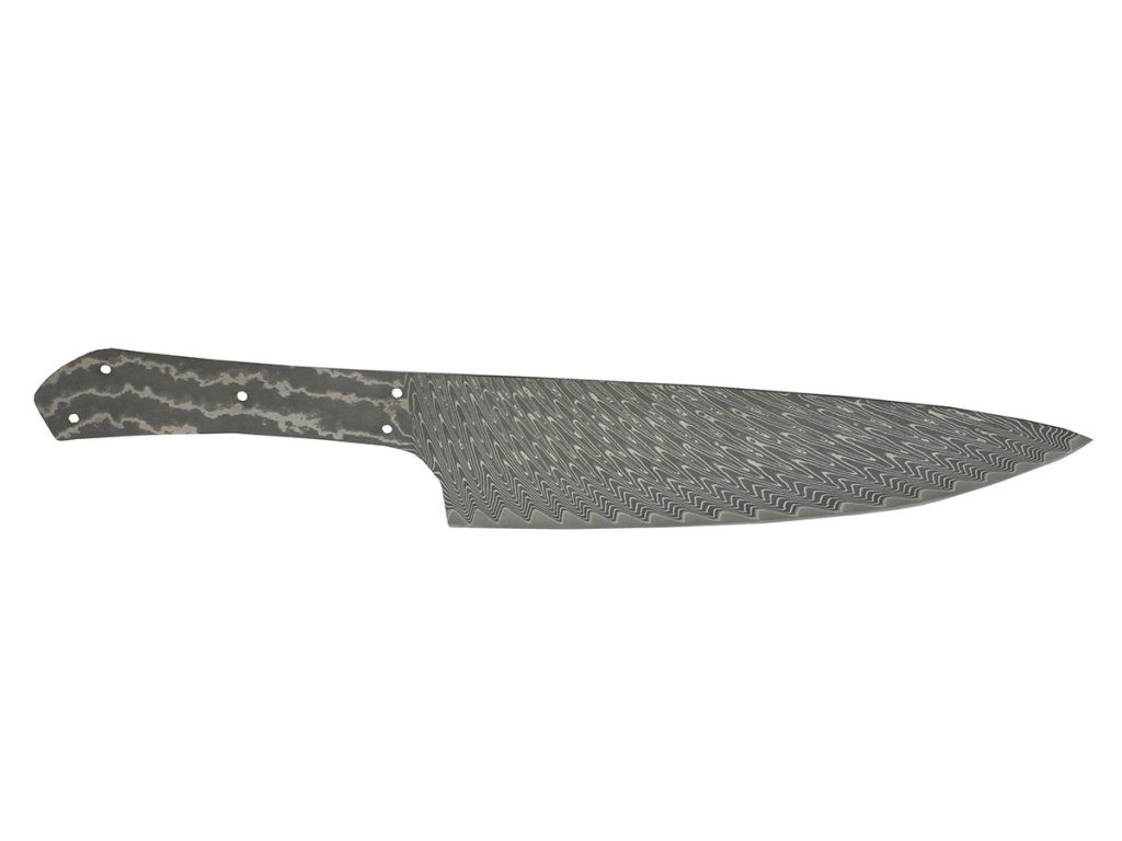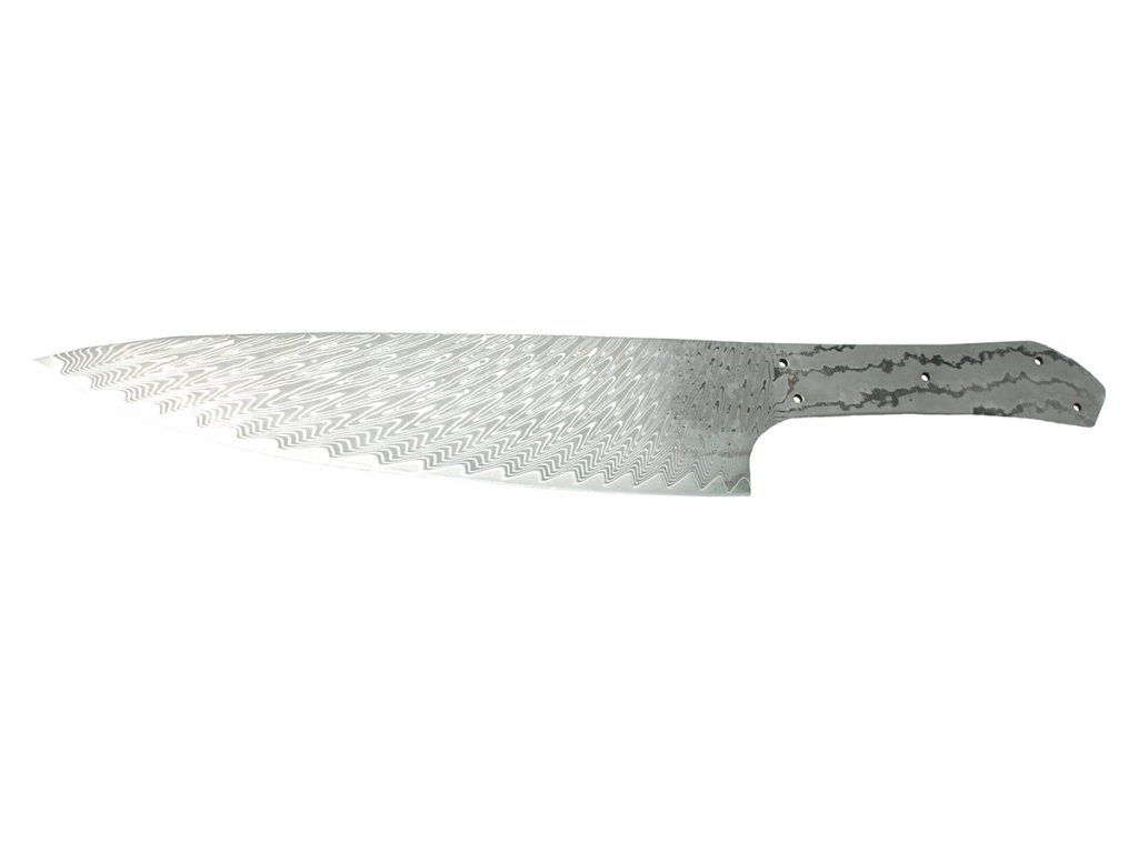 The blade is ready for handle attachment and final sharpening, without the need for further modifications. An ideal basis for making a Japanese-style kitchen knife with an attractive Damascus pattern.