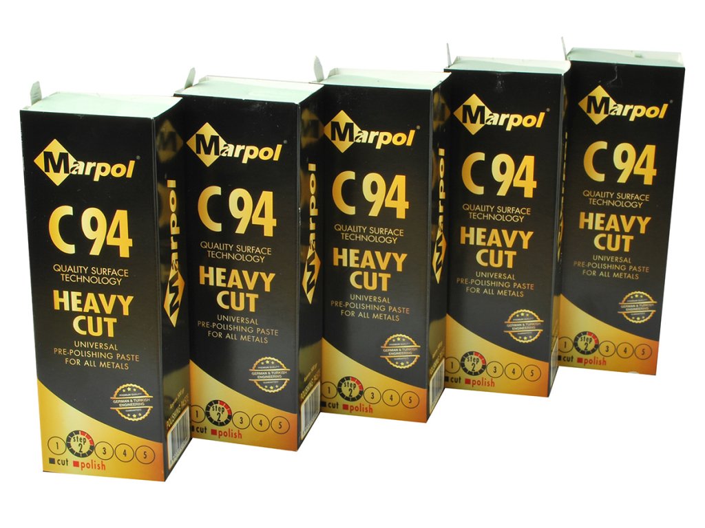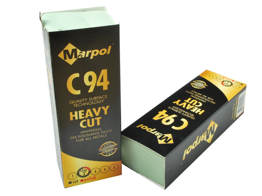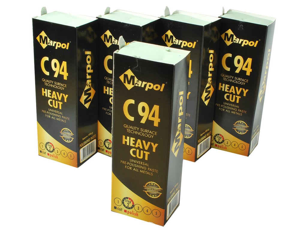 MARPOL C94 - abrasive pre-polishing paste (grade 2) with high cutting power for surface unification and medium gloss. Suitable for stainless steel, steel, aluminum and its alloys. Ideal for the first polishing step with sisal or denim.