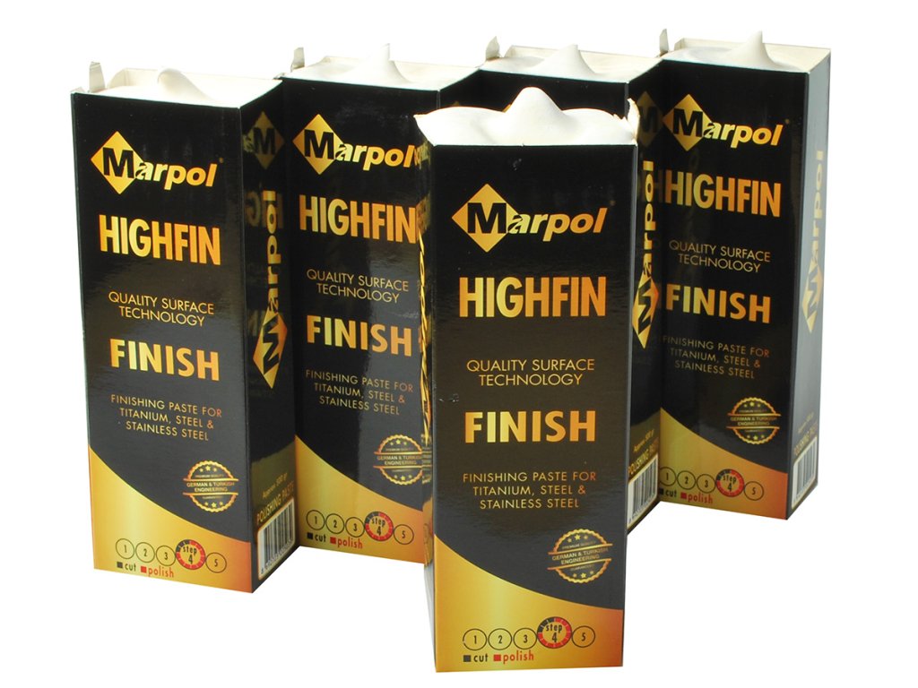 MARPOL HIGHFIN is a solid polishing paste for final polishing of stainless steel, steel, aluminum and titanium to a high gloss
