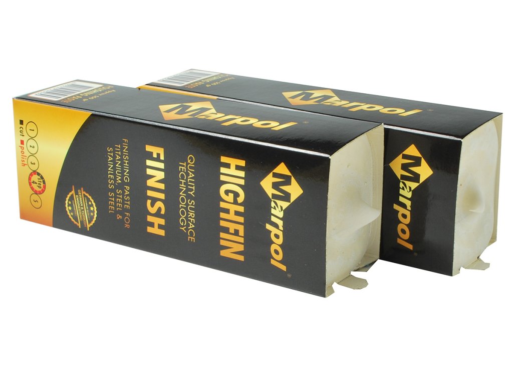 MARPOL HIGHFIN – final polishing paste (grade 4) for high gloss. Suitable for stainless steel, steel, aluminum and its alloys, titanium. Used with cotton and flannel wheels.