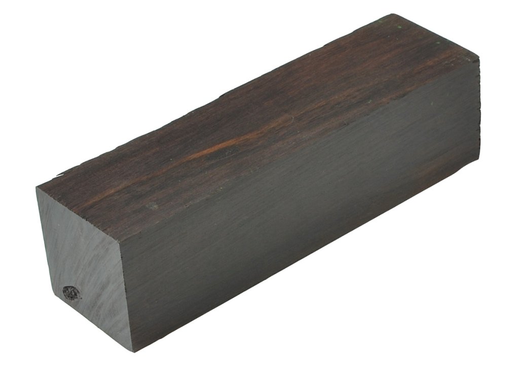 Černé dřevo s tmavě hnědým nebo fialovým odstínem se slabou až nerozpoznatelnou kresbou dřeva.