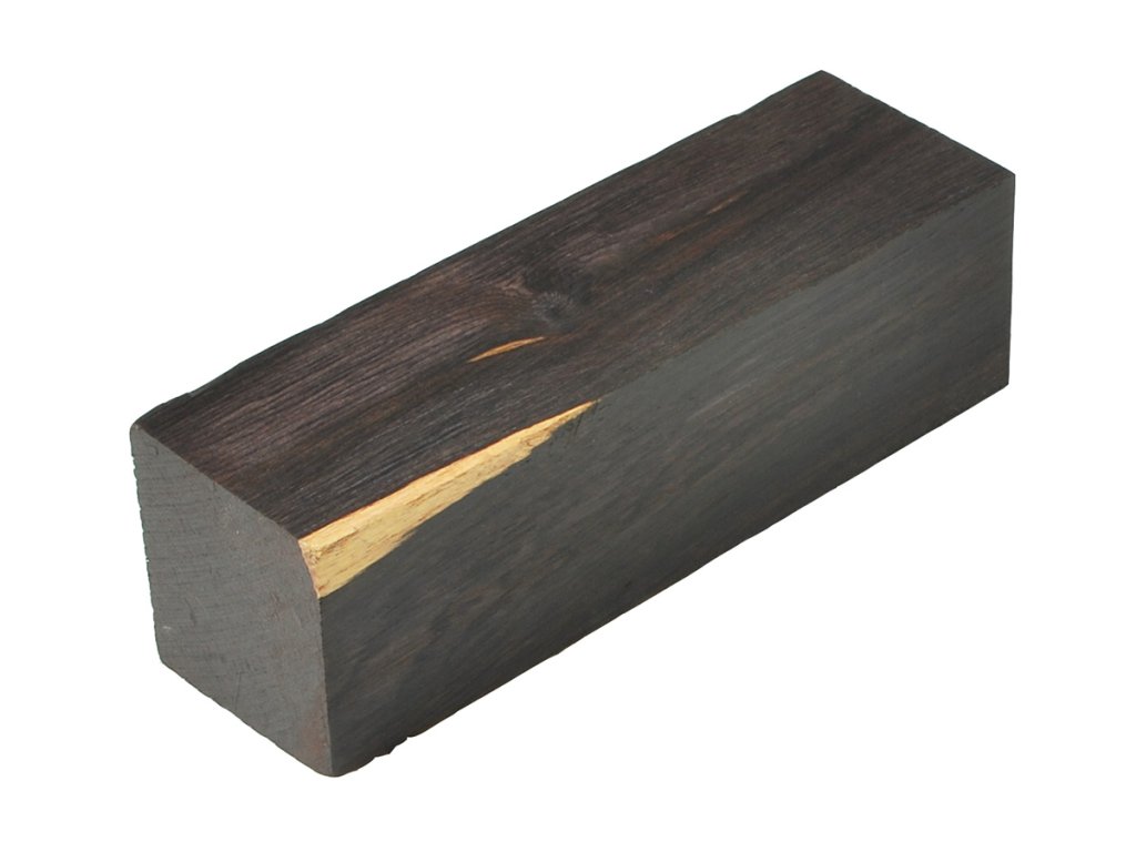Černé dřevo s tmavě hnědým nebo fialovým odstínem se slabou až nerozpoznatelnou kresbou dřeva.