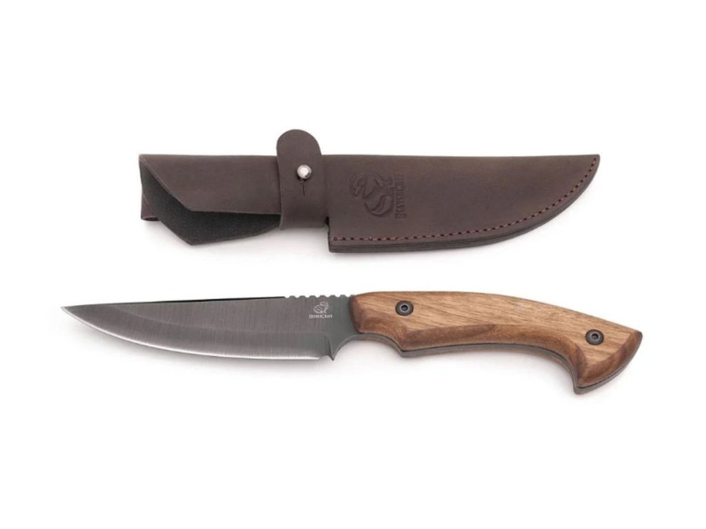 Bushcraft nůž s čepelí z uhlíkové oceli s povrchovou úpravou modřením s rukojetí z ořechu s koženým pouzdrem BeaverCraft HGK6