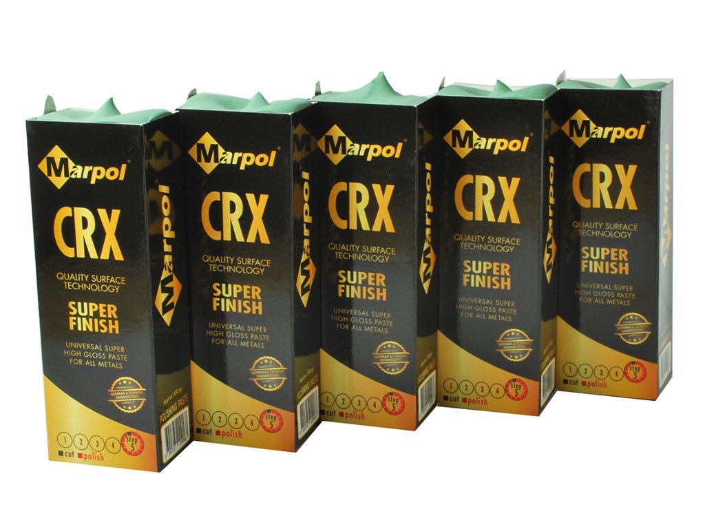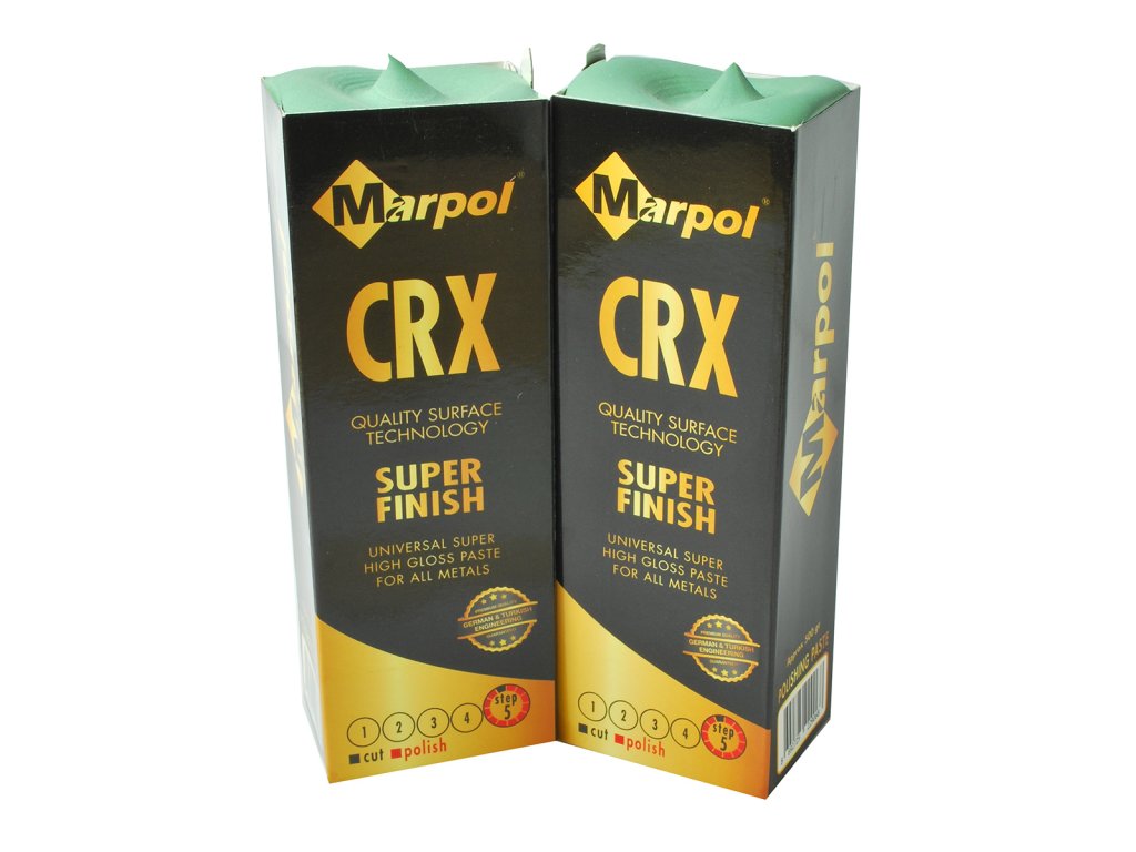 MARPOL CRX – finální leštící pasta (stupeň 5) pro zrcadlový lesk. Vhodná na ocel, nerez a neželezné kovy. Používá se s bavlněnými a flanelovými kotouči.