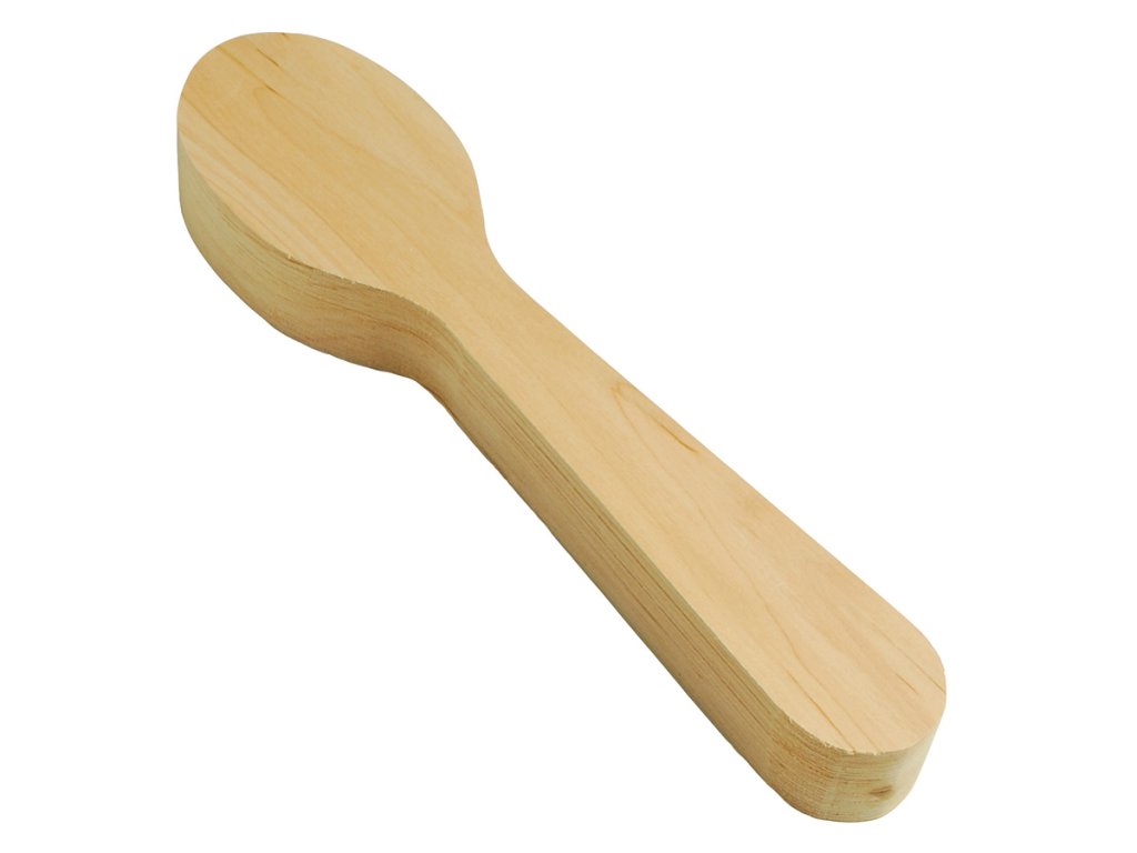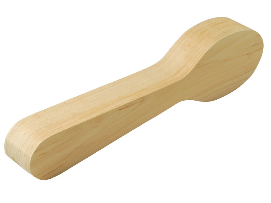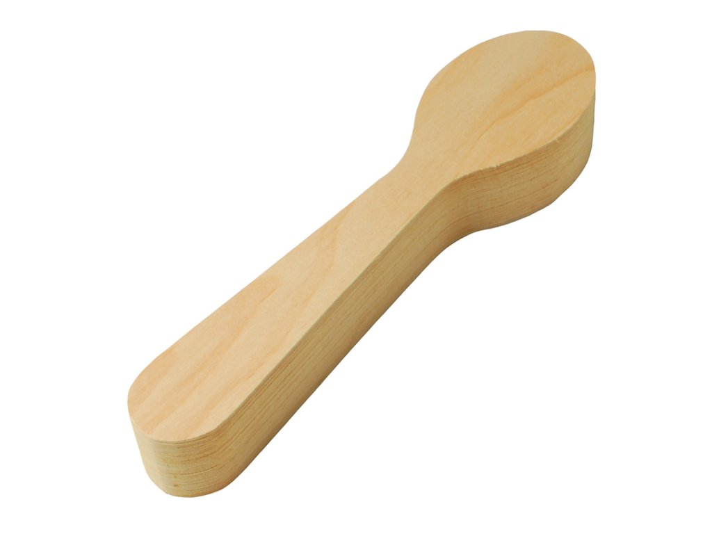 Polotovar pro výrobu dřevěné lžíce pomocí řezbářských nožů a dlát. Tvar a rozměry jsou navrženy tak, aby umožnily snadné vyřezávání dřevěné lžíce bez nutnosti hrubého opracování materiálu.