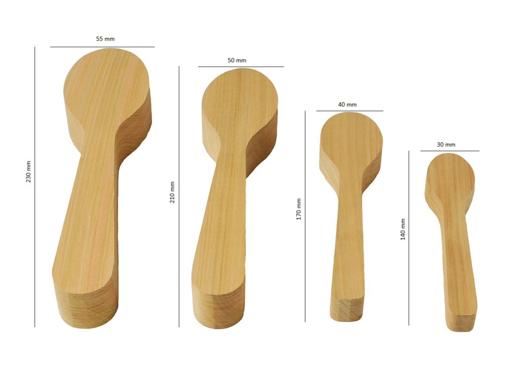 Materiál pro ruční výrobu dřevěné lžíce. Rozměr 30 x 55 x 230 mm, 1 kus. Pro řezbáře, hobby i výuku práce se dřevem.