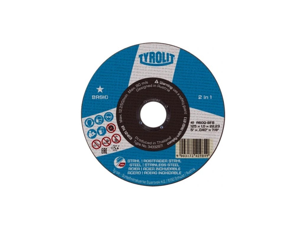 Řezný kotouč TYROLIT BASIC T41 125 x 1,0 x 22,23 2v1 ocel/nerez