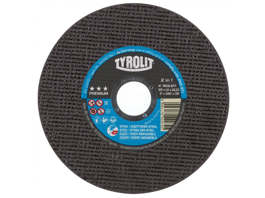 Řezný kotouč TYROLIT Premium 2v1 T41 125 x 1,0 x 22,23 ocel/nerez